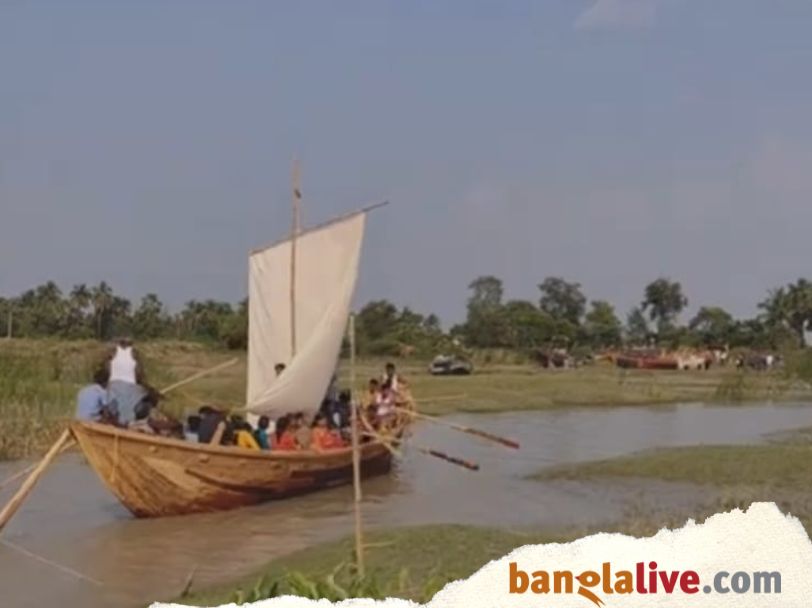 ঈশ্বর গুপ্ত লিখেছিলেন, “বদর বদর গাজী, মুখে সদা বলে মাঝি।” বদর পীর হলেন জল আর নাওয়ের অভিভাবক। মাঝিমাল্লারা নদী কিংবা গভীর সমুদ্রে তাঁর নাম করে পাড়ি জমায়। কার্ত্তিক মাসের সকালে সেই “ছোট্” নৌকো যখন ভাসল রূপনারায়ণ নদীর জলে, শক্ত হাতে পঞ্চানন ধরলেন তার হাল। বর্ষার জলে ভরা ছল ছলাৎ পাগলী নদীর ঢেউ। আরও চার জোড়া হাত টান দেয় বৈঠায়। গোমরা আকাশের ছায়া বুকে নিয়ে পড়ে থাকা গভীর জল বৈঠার ধাক্কায় চলকে ওঠে। পঞ্চাননের নির্দেশে উড়ান দেয় নৌকার সাদা পাল। অপ্রশস্ত খাঁড়ির আগল পেরিয়ে এবার সে ভেসে যায় নদীর দিগন্ত ছোঁয়া বিস্তৃতির মাঝে। আনন্দ, উল্লাশে ফেটে পড়ে কচিকাঁচার দল। পঞ্চাননের শক্ত চোয়াল বেয়ে নামে খানিক হালকা হাসি। মনে মনে স্মরণ করেন তিনি বদর পীরকে। অস্ফুট স্বরে বেরিয়ে আসে “দরিয়ার পাঁচ পীর বদর বদর”! (Boat)