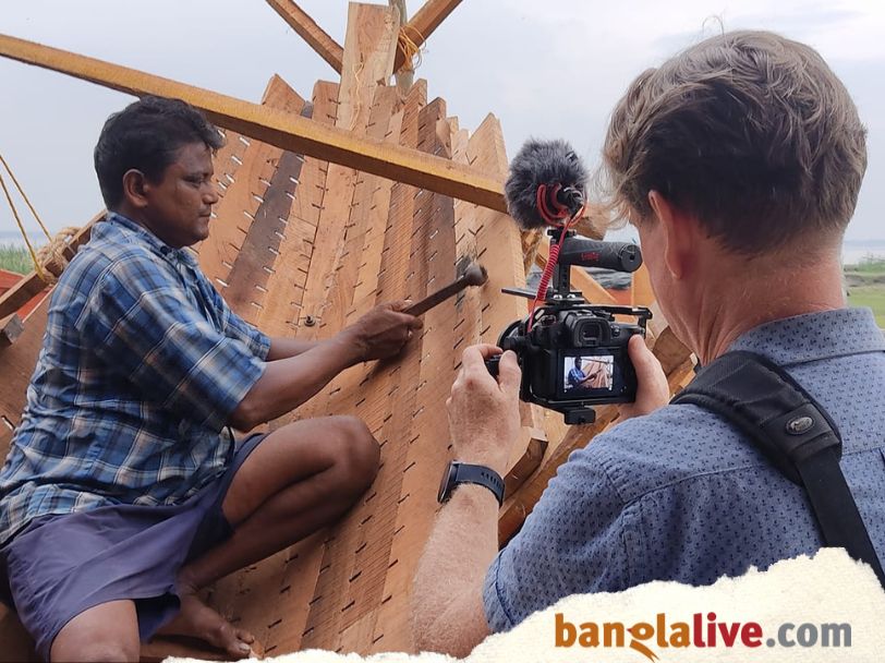 প্রতিদিনের কাজ শেষে ঘরে ফেরা। আশ্বিনের আকাশ জুড়ে এখনও চলেছে বর্ষার মেঘের খেলা। তার সঙ্গে মেশে গোধূলির আলো। রূপনারায়ণের জলে তার ছায়া পড়ে। সাঁঝবেলায় নৌকা তৈরির কারখানা ঝাঁট দিয়ে পরিষ্কার করে, গলুই আর খোলের গায়ে ধুপকাঠি জ্বেলে প্রণাম করে কারিগরের দল বাড়ি ফিরে যায়। ছোট্ নৌকোর আধাগড়া শরীরখানা পড়ে থাকে নদীর পাড়ে আরেক ভোরের অপেক্ষায়। (Boat)