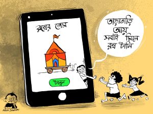 আজ রথযাত্রা। জগন্নাথ, বলরাম, সুভদ্রার রথে চড়ে মাসির বাড়ি যাওয়ার দিন। কিন্তু ভাইরাসের ভয়ে ভক্তিও ঠাঁই নিয়েছে ভার্চুয়ালে।