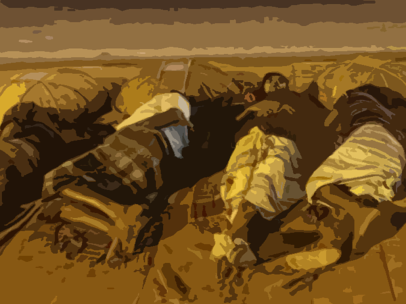 রাস্তার আলোগুলো, রাত-ভোর জ্বলে থাকে; যে কোনও একটা জায়গা বেছে নিয়ে, আলোর নীচে দাঁড়িয়ে বা বসে, মিনি স্কেচ করে নিই। সকালে স্নান এবং ব্রেকফাস্ট করেই জল-রঙে দ্রুত কাজ সারি; বেশ লাগে দিনের আলোয় বসে, রাতে দেখা ঘুম আর ছায়ান্ধকারের ছবি আঁকতে। বিভিন্ন এলাকায় ঘুরে ঘুরে ফুটপাথ আঁকড়ে বিছিয়ে থাকা ঘুমন্ত মানুষদের গাদা গাদা ছবি, এঁকেই চলেছি সমানে।