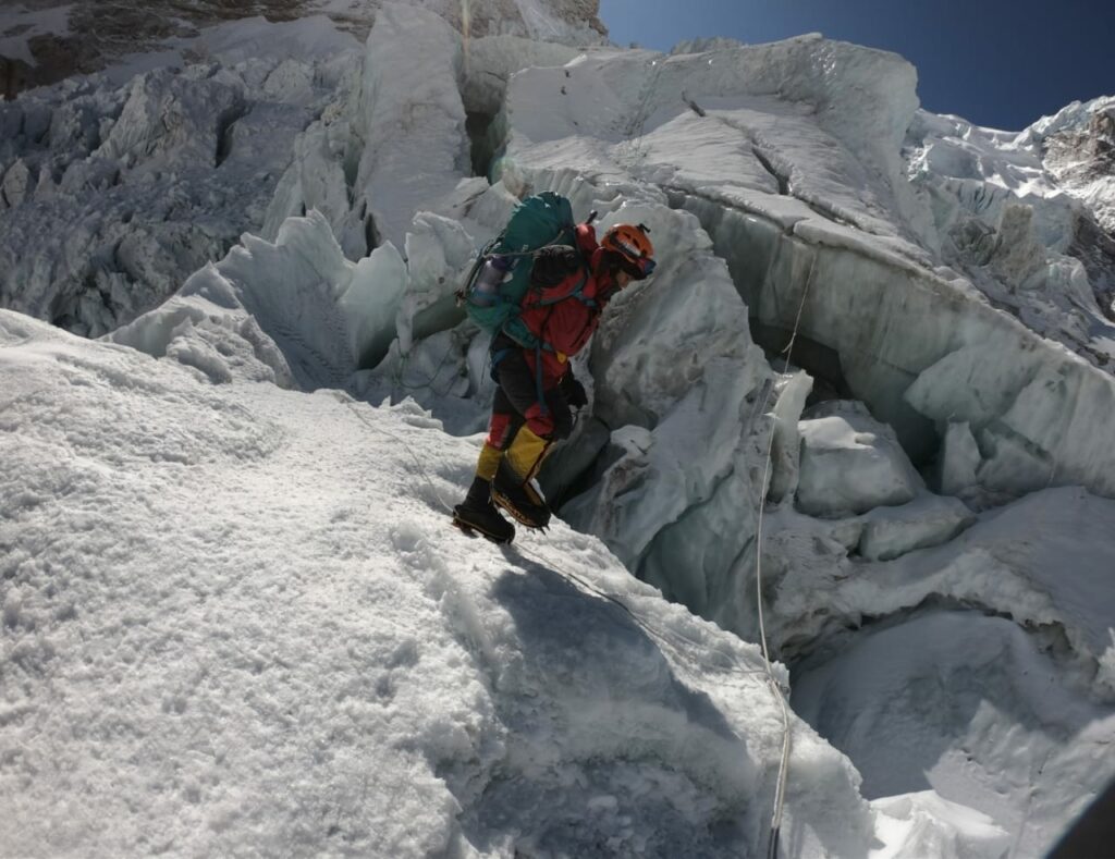 বারবার সেই বিপদজনক খুম্বু গ্লেসিয়ার এলাকা পার হতে হয়। প্রতিবারই দেখেছি, যে পথ দিয়ে গেছি, আসবার সময় সেই পথের মাঝে দুই চার জায়গায় রাস্তা ভেঙে গেছে। শেরপারা নতুন করে ফের সেই জায়গার রাস্তা বানিয়েছে। খুম্বু গ্লেসিয়ারের পুরোটাই ভাঙাচোরা বরফের রাজত্ব। পুরো পথ জুড়েই ছোট বড় আইস টাওয়ার আর লক্ষ লক্ষ বরফের ফাটল বা ক্রিভাস। প্রায় প্রতি মিনিটেই কোথাও না কোথাও তার কোনও একটা ভেঙে পড়ছে। সেই ভঙ্গুর বিপদজনক এলাকা দিয়েই পথ বানিয়ে নিতে হয়। প্রচণ্ড দক্ষ একদল শেরপা থাকে এই রাস্তা বানাবার দায়িত্বে। তারা এতটাই দক্ষ যে তাদের বলা হয় – আইস ফল ডক্টর। রাস্তা বানানো মানে, যে জায়গা দিয়ে আরোহীদের যেতে সুবিধা হবে, সহজতম সেই পথ খুঁজে বের করে সেই পথ বরাবর দড়ি লাগানো, যেখানে পথ রোধ করে আছে কোন ফাটল বা ক্রিভাস, সেখানে সেই ফাটলের উপর মই পাতার কাজ ইত্যাদি।