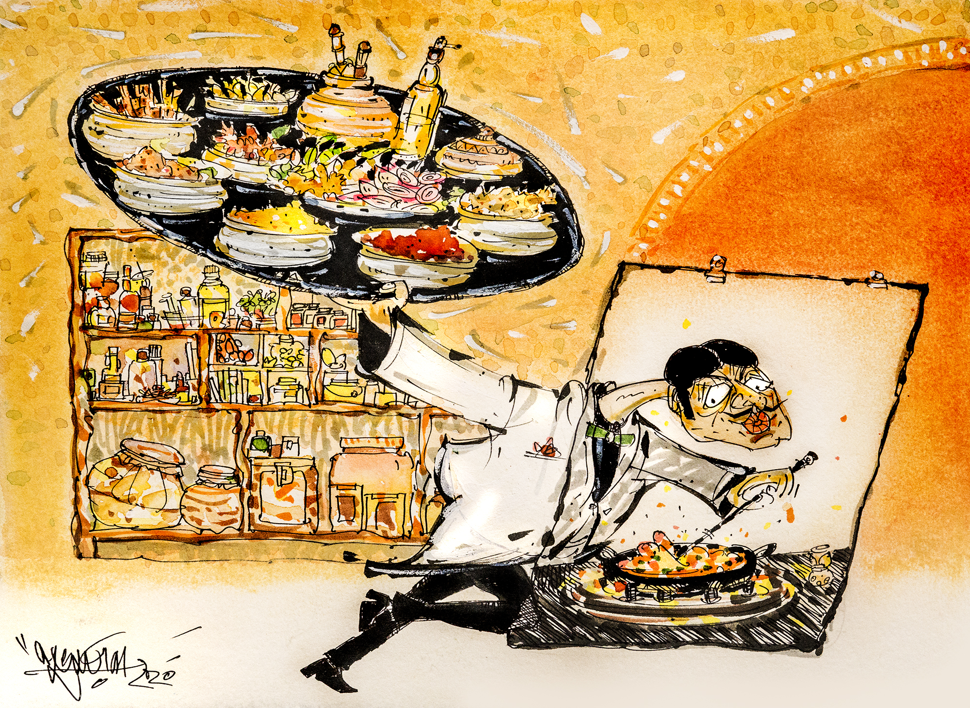 এ যেন অনেকটা ব্রাহ্মণ-ক্ষত্রিয়-বৈশ্য-শূদ্রের মতো ব্যাপার। হলুদ হলেন ব্রাহ্মণ। সাত্ত্বিক মশলা—ব্যঞ্জনের মস্তিষ্ক সচল রাখেন। লঙ্কা রাজসিক ক্ষত্রিয়। তিনি মাইনাস বিশ ডিগ্রি ঠান্ডায় ‘রাষ্ট্র’ নামক ব্যঞ্জনকে পাহারা দেন। তাঁর উগ্রতা ও Hot-তা বিভিন্ন ডিগ্রির। জিরকা হলেন বৈশ্য মানুষ। তরকারিতে ভাল মতো তাঁর প্রভাব-প্রতিপত্তি টের পাওয়া যায়। আর ধনিয়ার কাজ ওই তিন মশলার সেবা করা। ওই তিন মশলার সেবা মানেই ব্যঞ্জন-রাষ্ট্রের সেবা। ‘শিষ্ট চতুষ্টয়ে’র বাইরে যাঁরা বাস করেন, যেমন কলৌঞ্জি, এলাচ, জায়ফল, গোলমরিচ, লবঙ্গ, জয়িত্রী, দারুচিনি, তেজপাতা প্রমুখ সব হয় ম্লেচ্ছ, নয়তো বহিরাগত কিংবা তা ধিন-ধিনা।