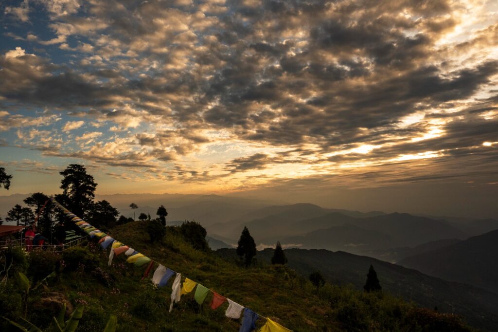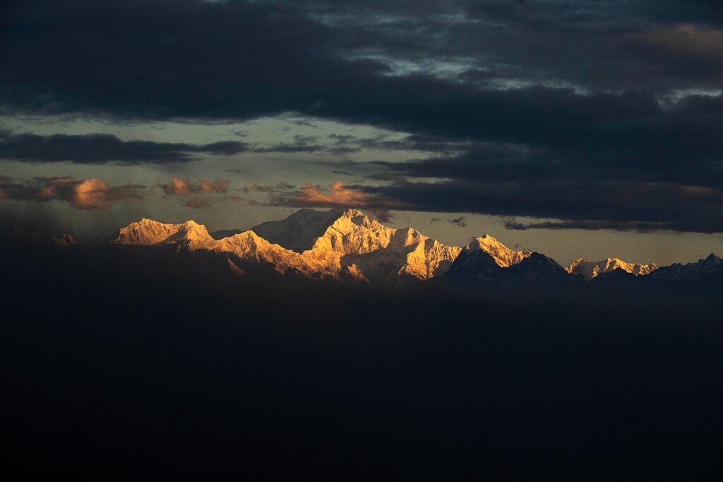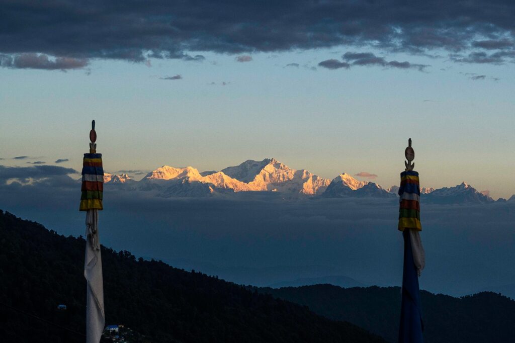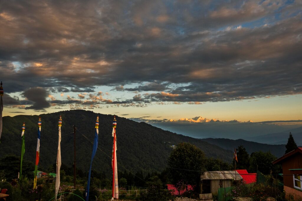 সকালে কাঞ্চনজঙ্ঘা রেঞ্জ চোখের সামনে। তবে মেঘের আনাগোনা সূর্যোদয় দেখতে দিলো না, যদিও লাল রঙে সেজেছে কাঞ্চনজঙ্ঘা। প্রচুর ফুল আর প্রজাপতির মেলায় রঙিন পথে হেঁটে বেড়াতে দারুণ লাগবে। আসল মজা শুরু হলো বেলা তিনটে নাগাদ। সহসা, মেরেকেটে ৫ মিনিটের মধ্যে মেঘের হানায় পুরো পাহাড়শ্রেণী গায়েব। তারপরে আরো মজা, কোথাও একটু মেঘ সরছে, সেখানে আলোয় সাজছে সবুজ পাহাড়, আবার নেই।