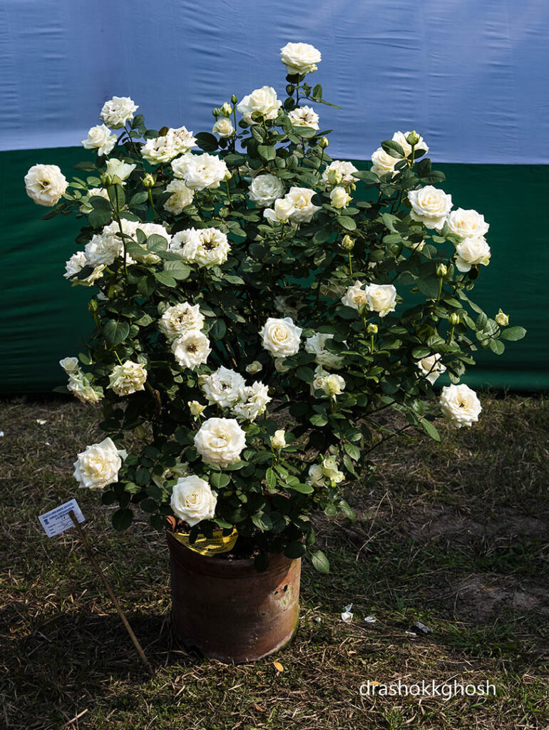 সঞ্জয়: “অন্যদিকে Floribunda হল মাঝারী আকারের গোলাপ, HT থেকে ছোট কিন্তু Miniature গোলাপের থেকে বড়। সাধারণত ফুল থোকায় হয়।”
