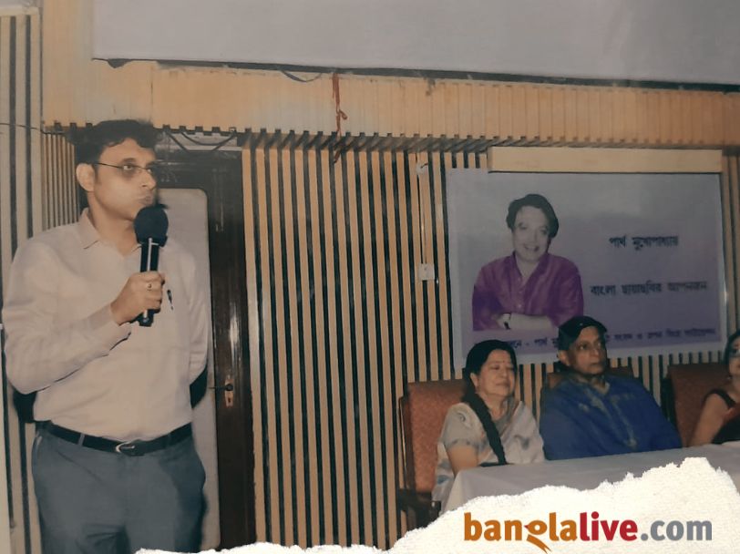 আমার এক দাদা শৈবাল পত্রনবীশ পরিচয় করিয়ে দিয়েছিলেন, এই সংবাদপত্রের কতৃপক্ষর সঙ্গে। উনি নিজেও নিয়মিত সেখানে লিখতেন। অতীতের বাংলা ছবির বিষয়ে লেখার কথা উঠতে মৃণালদার প্রসঙ্গ এল। আমি জানালাম কয়েক বছর আগে মৃণালদার সঙ্গে যোগাযোগ হয়েছিল কিন্তু বর্তমানে উনি কোথায় থাকেন জানি না আর ওঁর ফোন নম্বরটাও হারিয়ে ফেলেছি। শৈবালদা বলে উঠলেন, ‘মৃণাল তো আমার ভীষণ বন্ধু, ফোন নম্বরও রয়েছে, এখন লেক গার্ডেনসে থাকে, একদিন ফোন করে ওঁকে আর ওঁর স্ত্রীকে বাড়িতে আসতে বলব।’ হাতে চাঁদ পাওয়া গেল! একদিন মৃণালদা সস্ত্রীক এলেন, ওঁর সঙ্গে কথোপকথন রেকর্ড করার পরিকল্পনা থাকলেও সেসব প্রসঙ্গ কোথায় হারিয়ে গেল! (Mrinal Mukhopadhyay)
