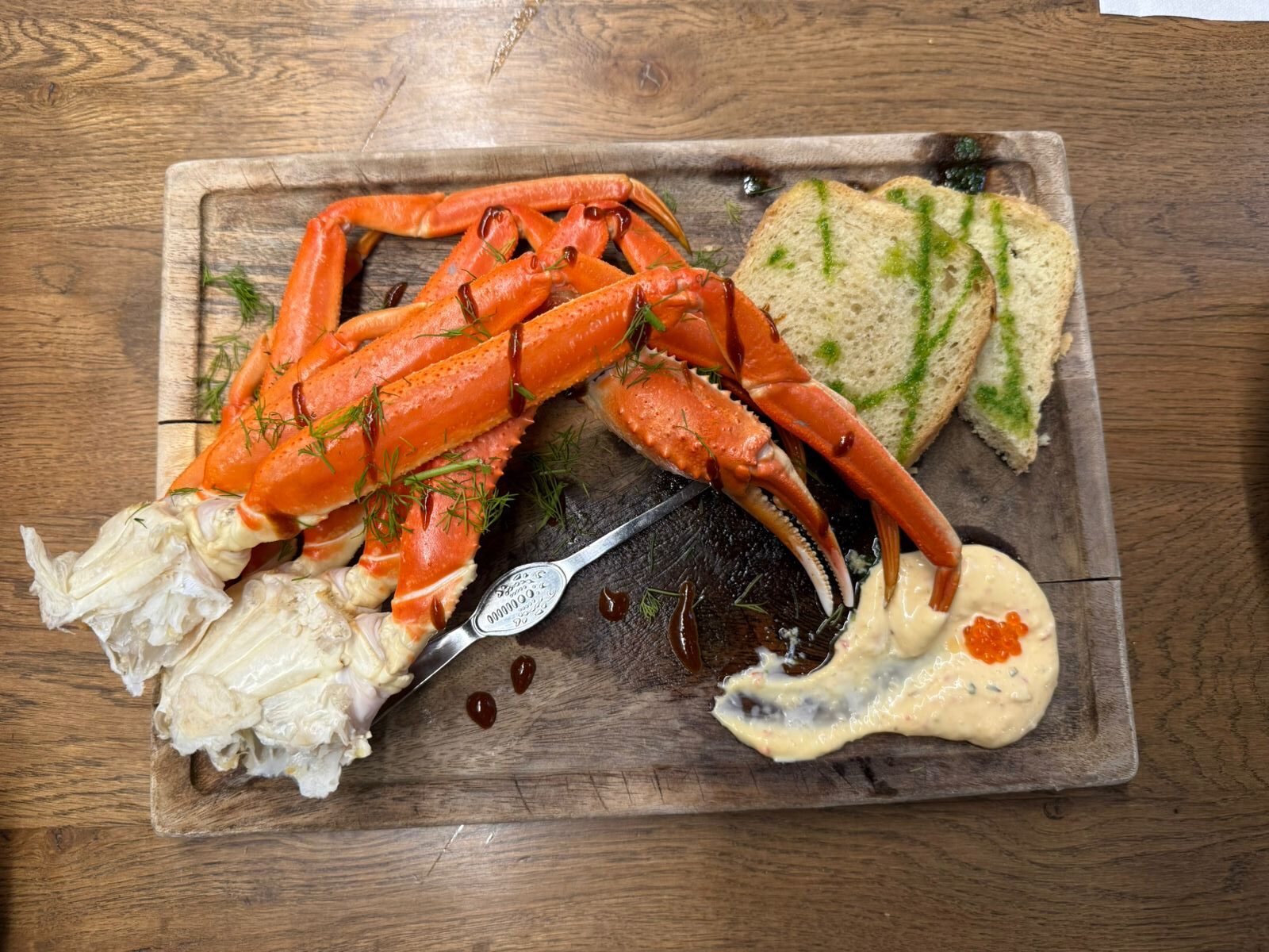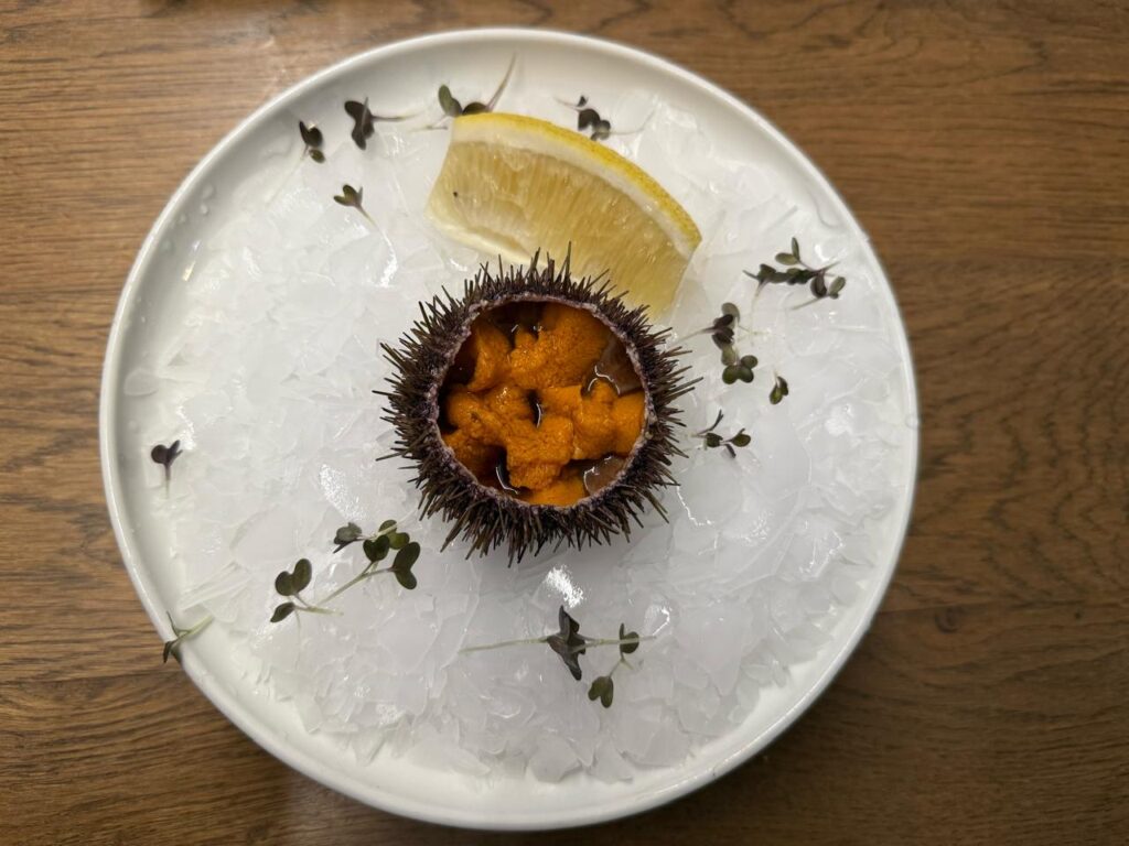 লাঞ্চ করলাম, স্নো ক্র্যাব দিল লিফ, হোয়াইট সস আর অল্প ক্যাভিয়ার দিয়ে। সঙ্গে একটা Sea Urchin, কাঁচা, বরফের ওপর সার্ভ করা, লেবু দিয়ে। খানিকটা ডাবের মতো, একটু মিষ্টি একটু সল্টি খেতে, জাস্ট অসাধারণ। কদিন ধরে লক্ষ্য করলাম, ওখানকার লোকেরা মাইক্রোগ্রিন খুব ভালোবাসে, প্রায় সব খাবারেই গার্নিশে মাইক্রোগ্রিন..