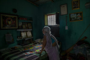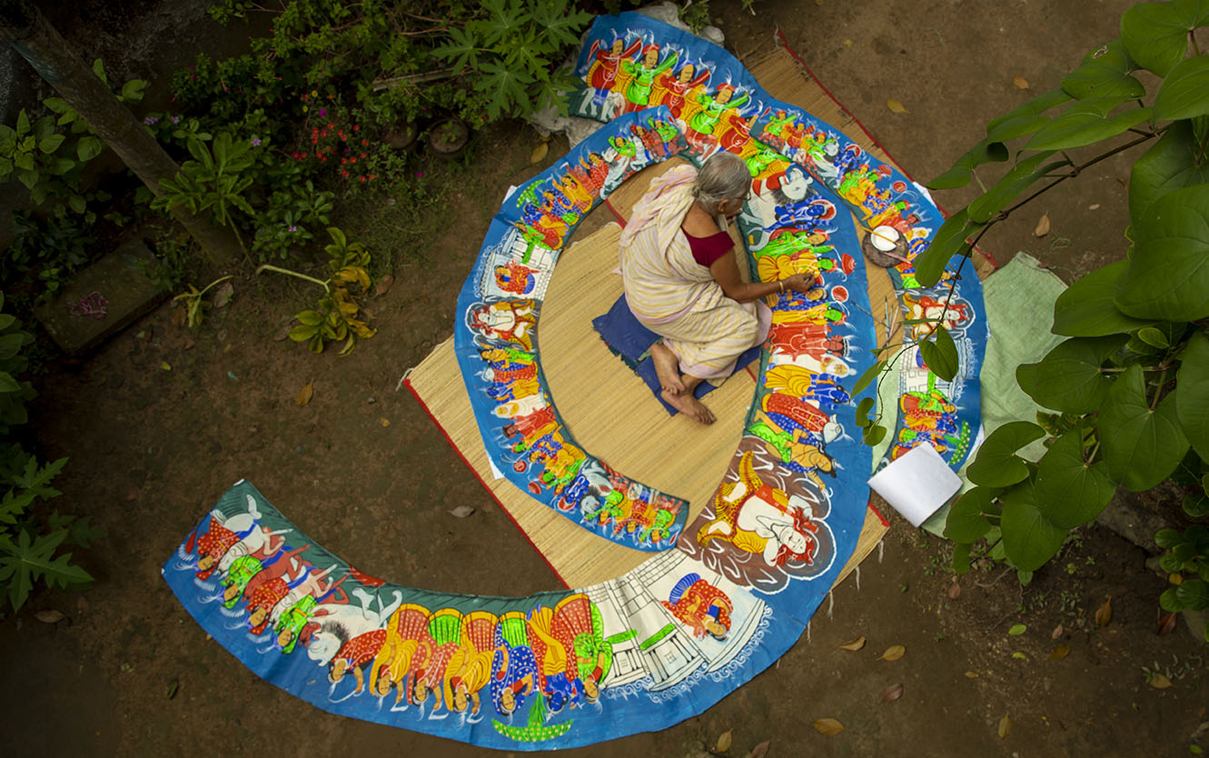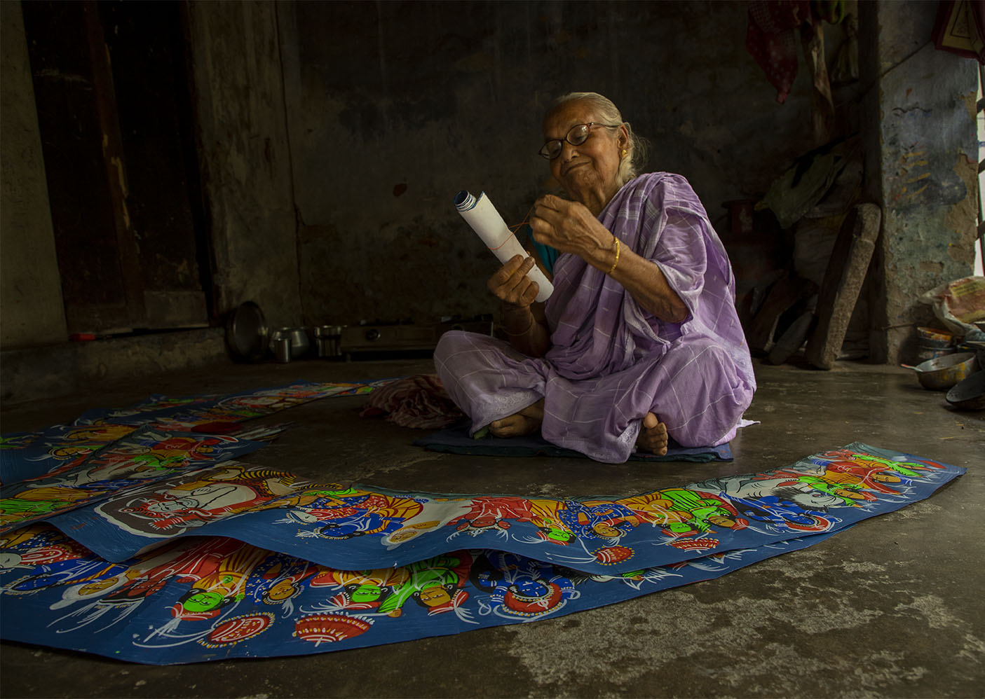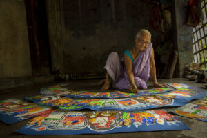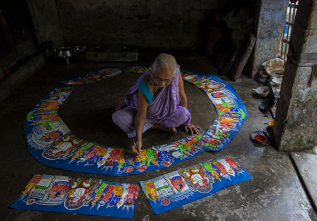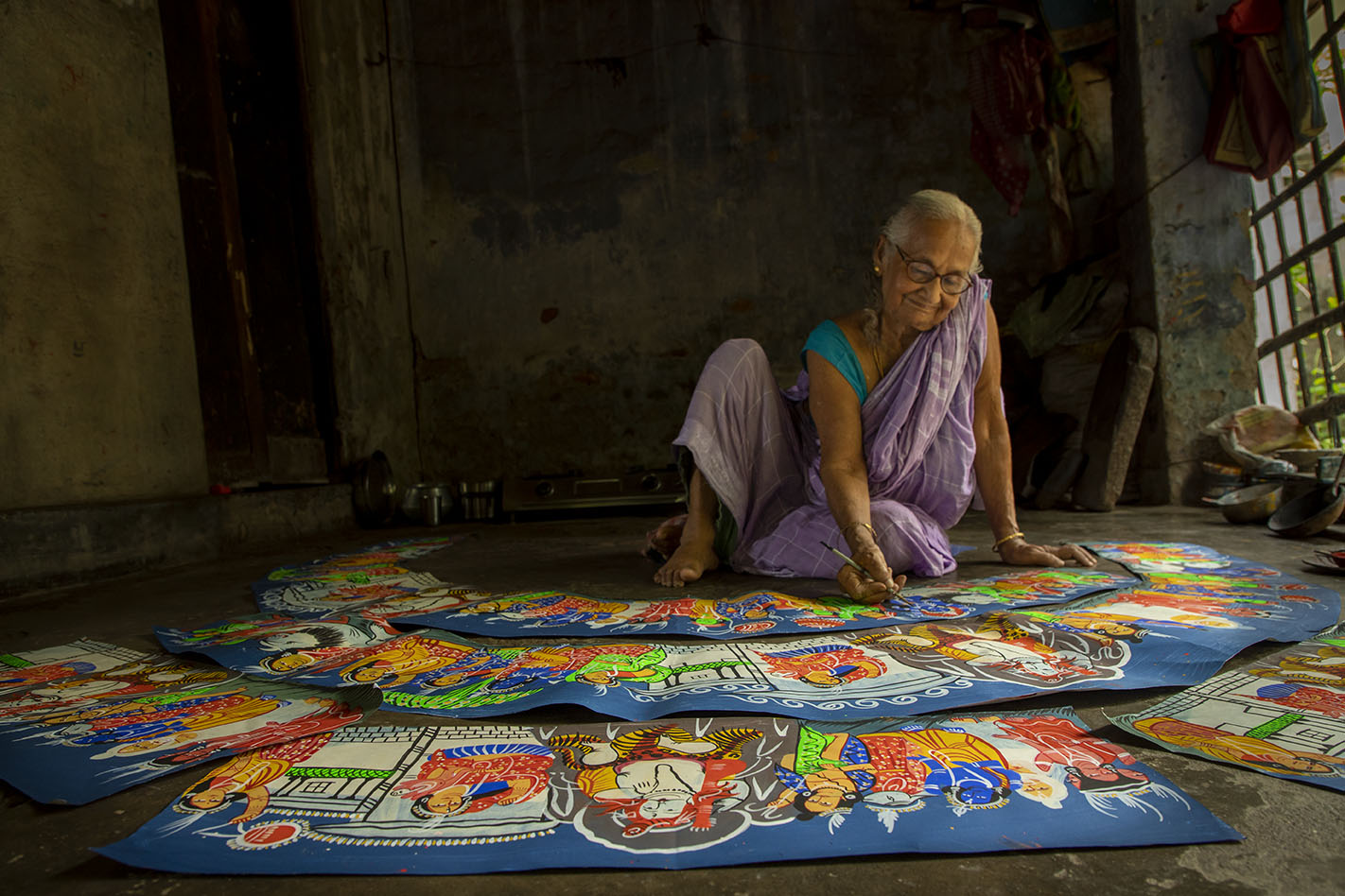 ছোট্ট টালির ঘরের সামনে এক চিলতে বারান্দায় বসে কাজ করতে করতেই তিনি জানাচ্ছিলেন, আগে তিনি এবং তাঁর স্বামী দুজনেই সারা বছর ব্যস্ত থাকতেন। তখন হাতে আঁকা চালচিত্র’র চাহিদা বেশি ছিল। এখন কম্পিউটার প্রিন্ট চালচিত্র বেশি ব্যবহার হওয়ার ফলে আগের মতো চাহিদা নেই।