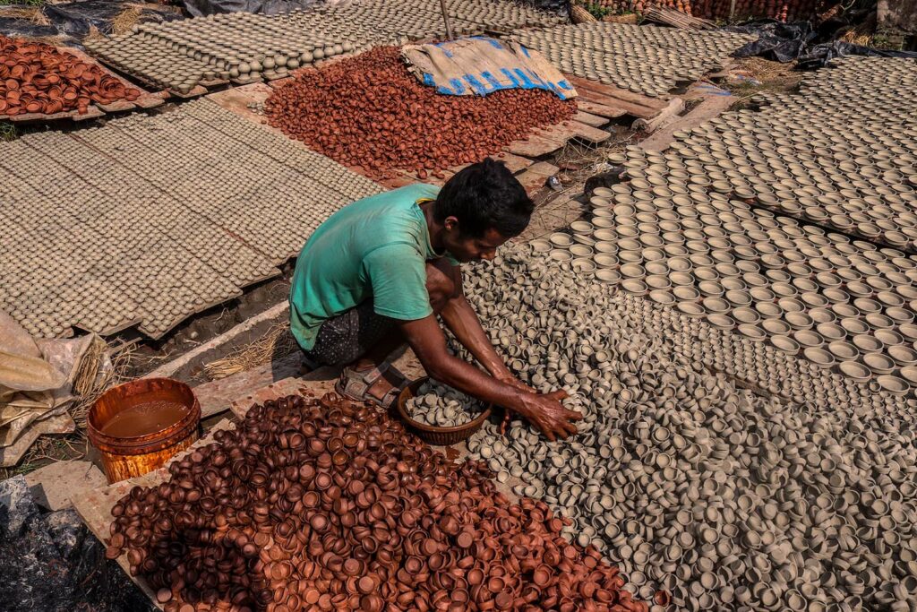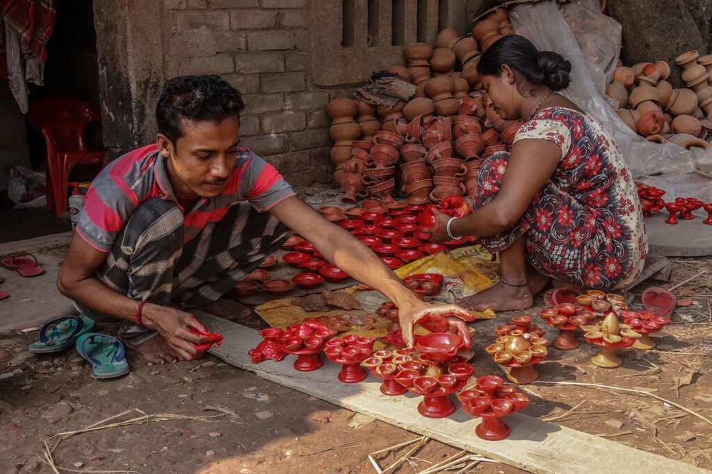 দীপাবলি (Diwali) বলতে আমরা বুঝি আলোর উৎসব। বর্তমানে বৈদ্যুতিক নানাবিধ টুনি লাইটের মাঝে আজও বিদ্যমান মাটির প্রদীপ (Clay Lamp)। উওর ২৪ পরগনার দওপুকুরের চালতাবেড়িয়া গ্রাম সারা দেশে বিখ্যাত মাটির প্রদীপ তৈরির জন্য। বর্তমানে প্রদীপের পাশাপাশি মাটির অনান্য জিনিসও তৈরি হয়ে থাকে।