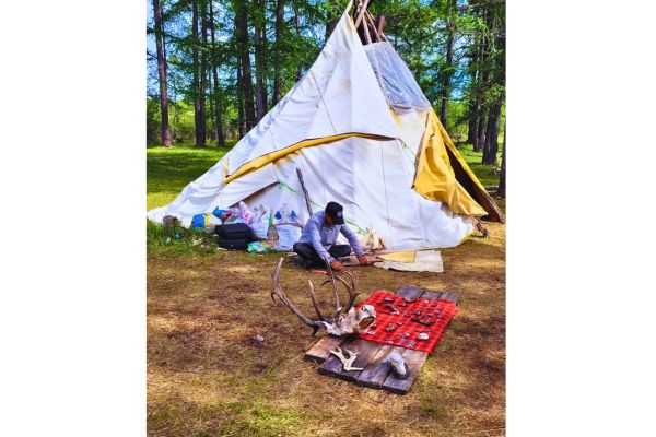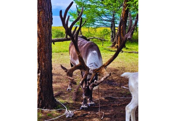 মঙ্গোলিয়ার (Mongolia) একটি অপূর্ব লেক খোভসগল। এখানে দুরাত থাকার সুবাদে একদিন স্পিডবোটে পৌঁছে গেছিলাম প্রায় ২০ কিমি দূরে লেকের অপর প্রান্তে অ্যালেক্সর দ্বীপে৷ সেখানে একাকী এক যাযাবর কয়েকটি বল্গা হরিণ নিয়ে বসবাস করে। তার তাঁবুর ভেতরে হরিণের শুকনো মাংস ঝোলানো রয়েছে। সেটাই আহারের ব্যবস্থা। তাঁবুর মাঝখানে একটি ঢাকা উনুন। ঘর গরম রাখা ও রান্না – দুটি কাজই চলে। হরিণের শিং দিয়ে সে নিঁখুত হাতে নানারকম জিনিসপত্র তৈরি করে পর্যটকদের কাছে বিক্রি করে। এভাবেই জোগাড় হয় মানুষটির জীবনধারণের রসদ। ছবিতে ধরা রইল তার বল্গা হরিণের সংসার।