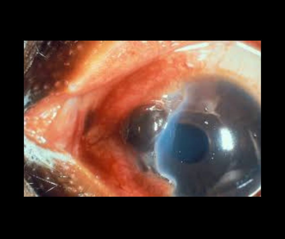 - চোখের লোম পড়ে গিয়ে, চোখের পাতা কুঁকড়ে, মণি অস্বচ্ছ হয়ে যেতে পারে।