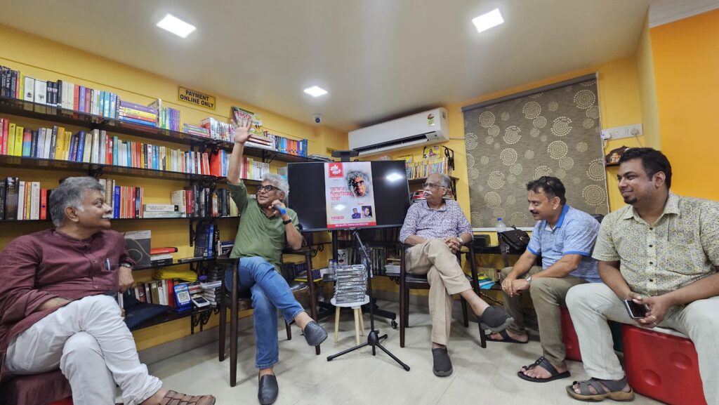 উৎপল দত্ত, কবীর সুমন, নবারুণ, দেবেশ রায় প্রমুখ নানা প্রজন্মের নানা গুণীজনের সঙ্গেই যেহেতু জড়িয়ে সুমন, এ দিন সকলের স্মৃতিই ফিরে ফিরে আসছিল। প্রায় দু’ঘণ্টা সময় যে কোথা থেকে পেরিয়ে গেল তারপর বোঝা যায়নি। তিস্তাপার, মেফিস্টো, হারবার্ট থেকে হালের সুমনের বানানো ছবি নজরবন্দ- সমস্ত কাজেরই অংশ বিশেষ দেখানো হল এ দিন। হিরণ মিত্রও জানালেন, কীভাবে তিনি ষাটের দশক থেকে মহীনের ঘোড়াগুলি পেরিয়ে মিশে গেছেন সুমনের সমস্ত কাজের রক্তমাংসের সাথে। শংকর চক্রবর্তী জানালেন, উৎপল দত্তর পর এত কাজ করে প্রশান্তি সুমন ছাড়া কোনও পরিচালকের কাছেই পাননি তিনি। রাত ৯টা বাজার সময় হলে বোঝা গেল যাদবপুর মোড় অবরুদ্ধ হবে এবার রাত দখলের মাধ্যমে। সদ্য প্রকাশিত বইতে সই সেরে বেরিয়ে এলেও জটলা জারি থাকল সুমনকে ঘিরে রাস্তায়। চলল আড্ডা, মস্করা। বারো পার্বণের এই ছোট জমায়েত ক্রমশ মিশে গেল তারপর শহরজোড়া বড় জমায়েতে। রেশ থেকে গেল শুধু, যেমন যায়…
