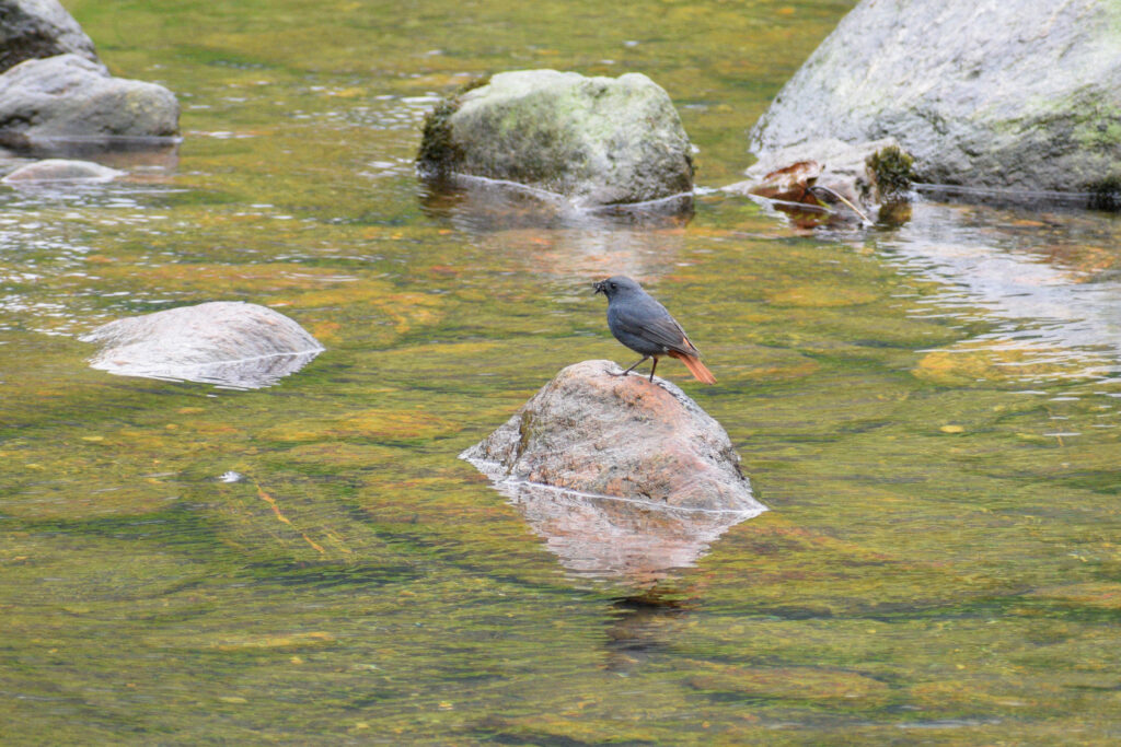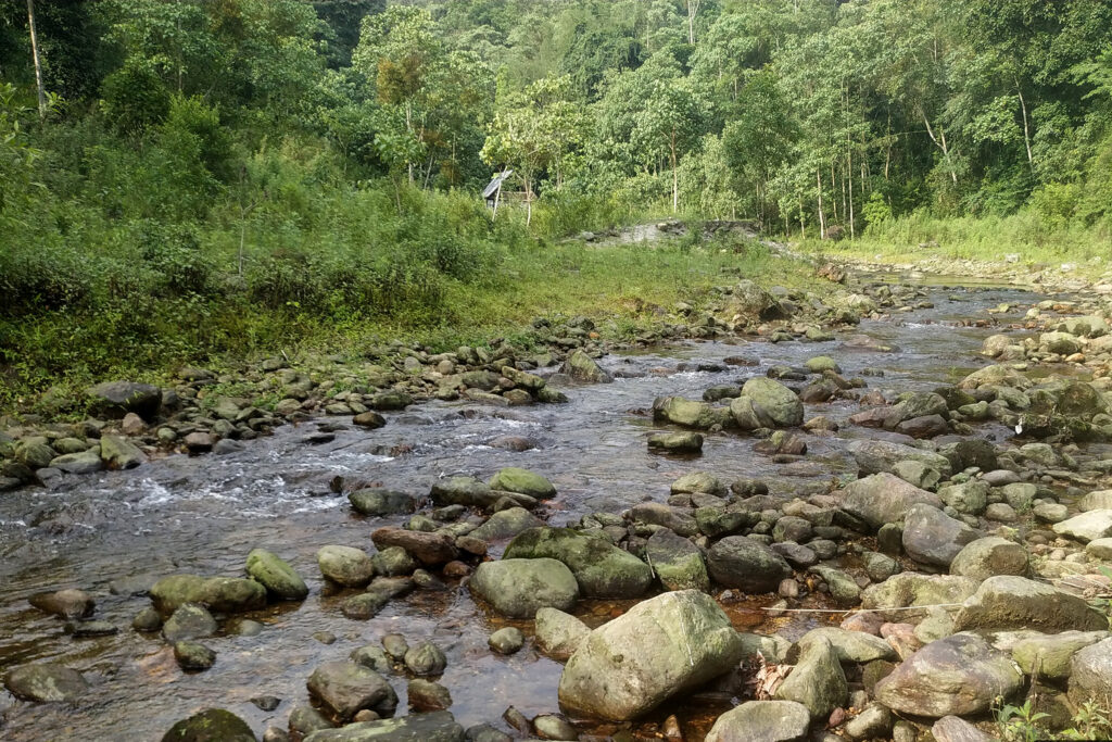 ফিরে এলাম রুমে। ব্রেকফাস্ট সেরে ঠিক করলাম চুমাং নদীর বুকে খুঁজে দেখব মানিক রতন। এর মধ্যে আলতাপরি, হরবোলা, ফুলঝুরি, কাঠকুড়ালি, পাহাড়ি বুলবুল, হিমালয়ান বুলবুল, পাহাড়ি হাঁড়িচাচা ও নীলাঞ্জনা দেখা দিয়ে গেছে আমাদের। হোমস্টের পেছনের পাকদণ্ডী দিয়ে নেমে গেলাম চুমাং নদীর বুকে। কত বুনো গাছের ভিড় সেখানে। নদীর ধারে দাঁড়িয়ে প্লাম্বাস রেডস্টার্ট পাখির খেলা দেখছি।