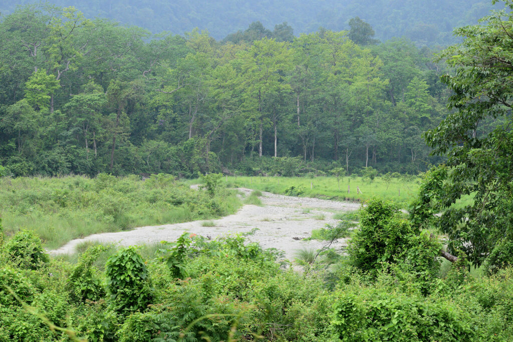 ওপারে আরেকটা স্টে, তবে তাঁবু খাটিয়ে থাকার ব্যবস্থা। ‘চুমাং রিভার নেস্ট’ স্টে-র রোহিত আমাদের আমন্ত্রণ জানাল ওদের ওখানে প্রজাপতি দেখতে যেতে। সেখানে প্রজাপতির হাট বসেছে। আমরাও নদীর অল্প জলের পাথর পেরিয়ে ওপারে গেলাম। আহা! কী অপূর্ব সুন্দর সে দৃশ্য! একবুক পাথর নিয়ে কুলকুল করে বয়ে চলেছে দাওয়াইখোলা। তিনপাশে প্রাচীন গাছের ভিড়, সামনে অনেকটা ফাঁকা জায়গা আর তারপাশে ভুটান পাহাড়। মেঘ ভেসে যাচ্ছে। মাঝে মাঝে ঝিরঝিরে বৃষ্টির ফাঁকে রোদ উঁকি দিচ্ছে। আমরা অনেকটা সময় কাটিয়ে ফিরে এলাম হোমস্টেতে।