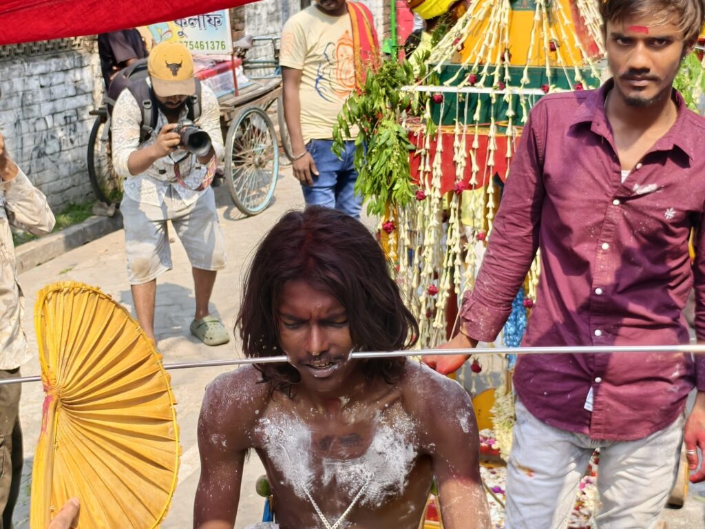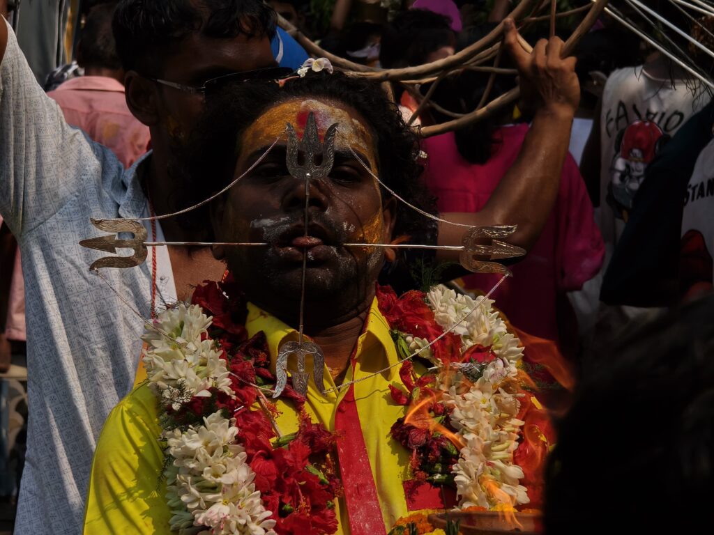 সজ্জিত রথচালনার মাধ্যমে ভক্তদের এক বর্ণাঢ্য শোভাযাত্রা হয়। এটি শুরু হয় পুকুরে স্নানের মাধ্যমে, যা পবিত্রতার প্রতীক। অংশগ্রহণকারীরা “ভেল ভেল” এর ভক্তিমূলক মন্ত্রের প্রতিধ্বনি করতে করতে এগিয়ে চলে। এরপর, ধাতব বর্শা দিয়ে দেহ, জিহ্বা, গাল বা পিঠে বিদ্ধ করে তপস্যা এবং ভক্তি প্রকাশ করে।