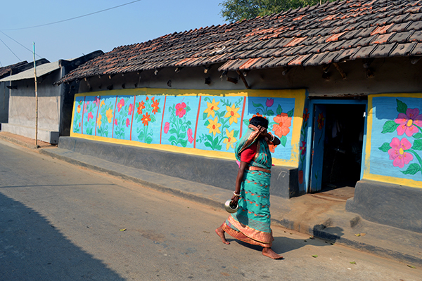 ২ কিলোমিটার এগোতেই হিড় গ্রাম। সাঁওতাল পাড়া। সরু, কাঁচা পথ। দুপাশে মাটির ঘরদোর। কোনওটার দেওয়ালে আলপনা আঁকা। পরিচ্ছন্ন, নিকোনো উঠান। গ্রামজীবনের ব্যস্ততা শুরু হয়েছে। বাচ্চারা স্কুলের পথে।